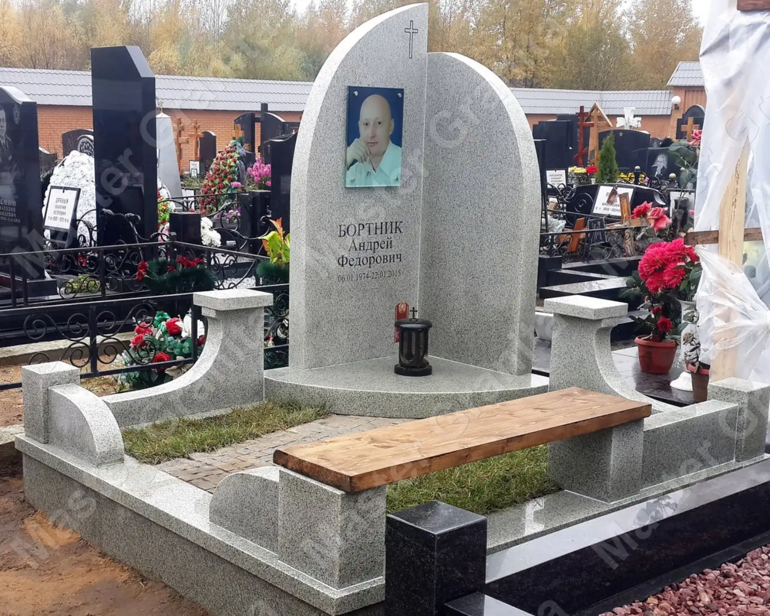 Лаконичный светлый комплекс с закругленными формами изготовлен из мансуровского гранита, что увеличивает срок его эксплуатации по сравнению с мрамором. Каждый элемент комплекса перекликается с другим, создавая гармонию, единство и умиротворение.